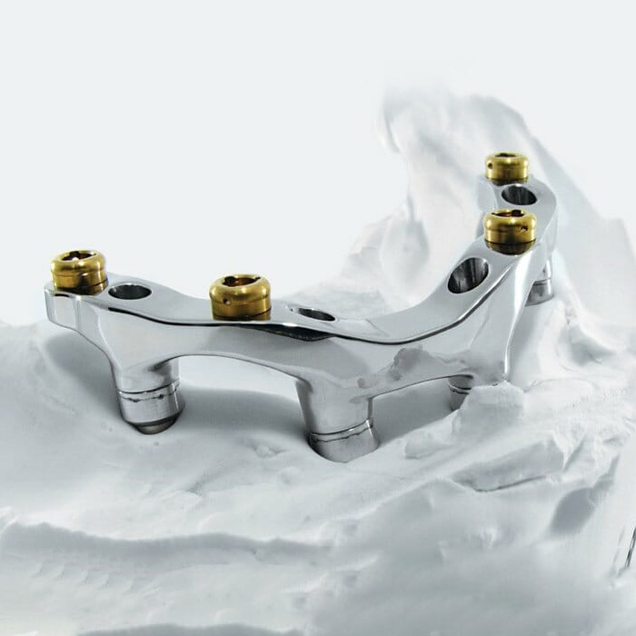İmplant üstü protezler için tam çıkar yapılabilir barlar.